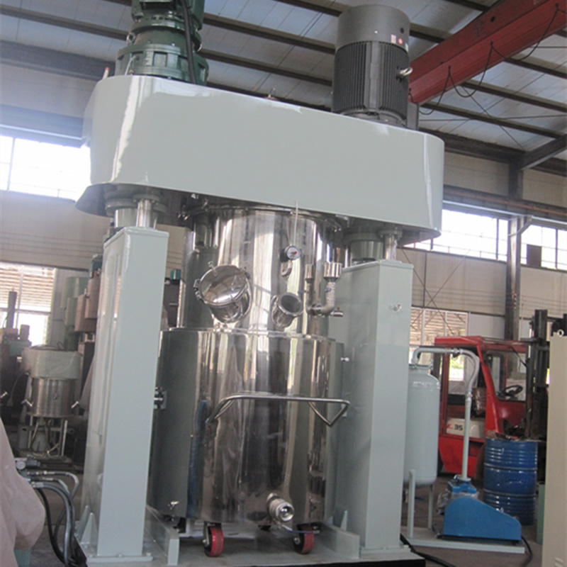 美縫劑設備在行星架上有一刮壁刀隨行星架轉動,緊貼桶壁不斷的刮拭密封膠,桶壁經大型立車精加工后,再經大型自動拋光機拋光,以確保行星架上的活動刮刀在旋轉時把桶壁的物料完全刮掉,使桶壁無滯留料,提高混合效果。強力分散機是一種優質高效的密封膠生產設備。