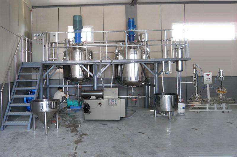 涂料設備在涂料生產工藝上,采用液體計量器計量,高剪切乳化分散,真空吸料,真空消泡,半自動灌裝工藝流程,從投料到出成品一道工序.該設備特殊設計的組合式乳化頭結構,采用高速旋轉的轉子與精密的定子工作腔配合,使物料充分分散乳化,從而使物料細化。確保了被加工物料在高、中、低各種粘度狀態下無死角運行。