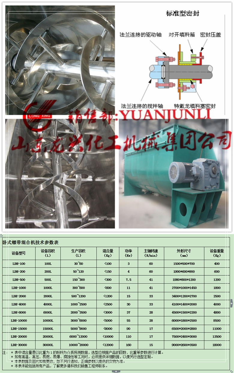 臥式螺帶混合機(jī)是由安裝于攪拌軸上的內(nèi)外徑螺旋帶動(dòng)桶體內(nèi)物料翻動(dòng),使攪拌器在桶體內(nèi)較大范圍翻動(dòng)物料。攪拌器結(jié)構(gòu)上,螺旋設(shè)計(jì)成內(nèi)外、左右互為反螺旋,攪拌器工作時(shí)內(nèi)螺旋帶動(dòng)靠近軸心處物料做軸心旋轉(zhuǎn),軸向由內(nèi)至兩側(cè)推動(dòng),外螺旋帶動(dòng)靠近筒壁物料做軸心旋轉(zhuǎn),軸向由兩側(cè)至內(nèi)推動(dòng),物料在雙層螺旋帶的對(duì)流運(yùn)動(dòng)下,形成一個(gè)低動(dòng)力高效的混合環(huán)引境。攪拌裝置工作時(shí)內(nèi)螺旋帶動(dòng)靠近軸心處物料做軸心旋轉(zhuǎn),軸向由內(nèi)至兩側(cè)推動(dòng),外螺旋帶動(dòng)靠近桶壁物料做軸心旋轉(zhuǎn),軸向由兩側(cè)至內(nèi)推動(dòng),本混合物料能夠在較短時(shí)間內(nèi)均勻混合。