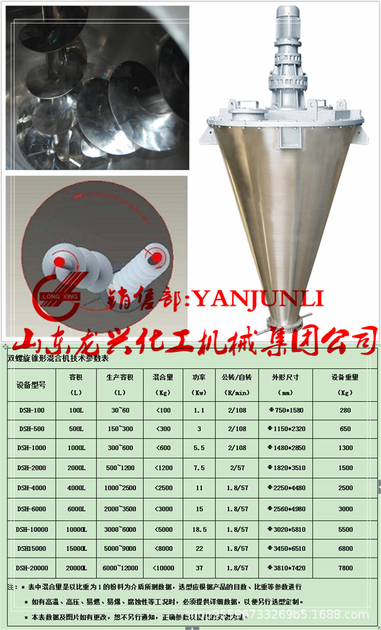 優點: 與單螺旋混合機比較,有如下的優點: 1)混合時間短,效率高,可提高效率2~3倍。 2)混合能力大,裝料系數比滾筒式提高20~30%,比V型混合機提高25~40%。 3)混合精度高,能耗較低,約可減少二分之一(指單位重量物料而言)。 4)混合機殼體高度低。 5)底部出料排放快,出料干凈利索,底部可以嚴密關住,不會漏料。 6)物料的混合死角可以減小到最低限度。 7)設備清洗方便,便于更換混合物料品種。 8)避免維修設備底軸承的工作。 9)有利于設備向大型化方向發展。