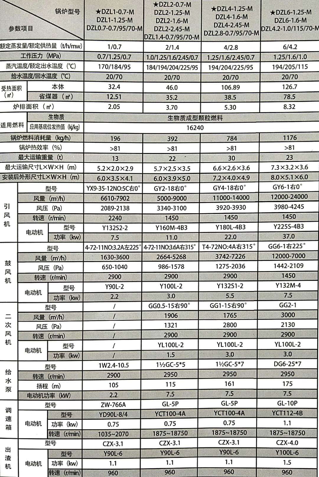 DZL型系列快裝鍋爐是臥式三回程水火管鏈條爐排鍋爐,燃用顆粒成型燃料。鍋爐本體為單鍋筒縱向布置,鍋筒內布置螺紋煙管組成對流受熱面,鍋筒與兩側水冷壁組成爐膛輻射受熱面。燃燒設備采用輕型鋌條爐排;整體快裝形式出廠。電氣控制實現爐排無級調速,極限參數報警及聯鎖保護。 特點: 1. 經濟節能:依據生物質燃料特性,采用旋風、氣化、富氧分段燃燒技術,全過程潔凈燃燒,特殊設計的余熱回收結構,為客戶節省每一分錢。比燃油、燃氣、電加熱鍋爐可節省30%--60%運行費用。 2. 運行高效:臥式三回程水火管組合式結構、特殊前后拱設計和分段送風,受熱面積大,燃料燃燒充分,熱效率高,配合專業節能器熱效率可達89%以上。 3. 低碳環保:符合GB13271煙塵排放的要求。達到國家一類地區??時段標準值要求,氮氧化物、二氧硫化物近似零排放。 4. 穩定可靠:壓力(溫度)、缺水采用多重連鎖保護,鍋爐運行穩定、安全可靠; 5. 操作簡單:鍋爐運行自動化程度高,配備自動加料裝置,操作簡單,司爐工工作強度低; 技術參數:因技術不斷改進,產品結構及性能可所變化,僅供參考。應用范圍:可廣泛應用于服裝制造,食品加工,酒店,化工、學校、醫院及企事業單位生產和生活用汽,特別適合對環保節能要求高的地區用戶使用。